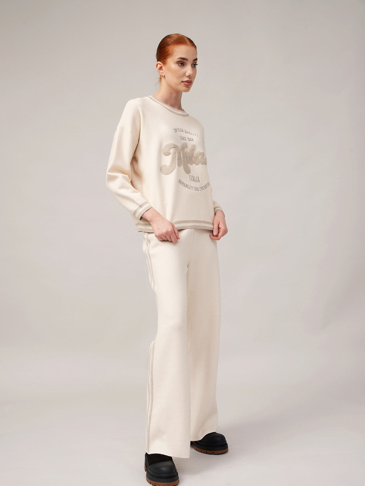 Moteriškas megztinis ir kelnės su kašmyru